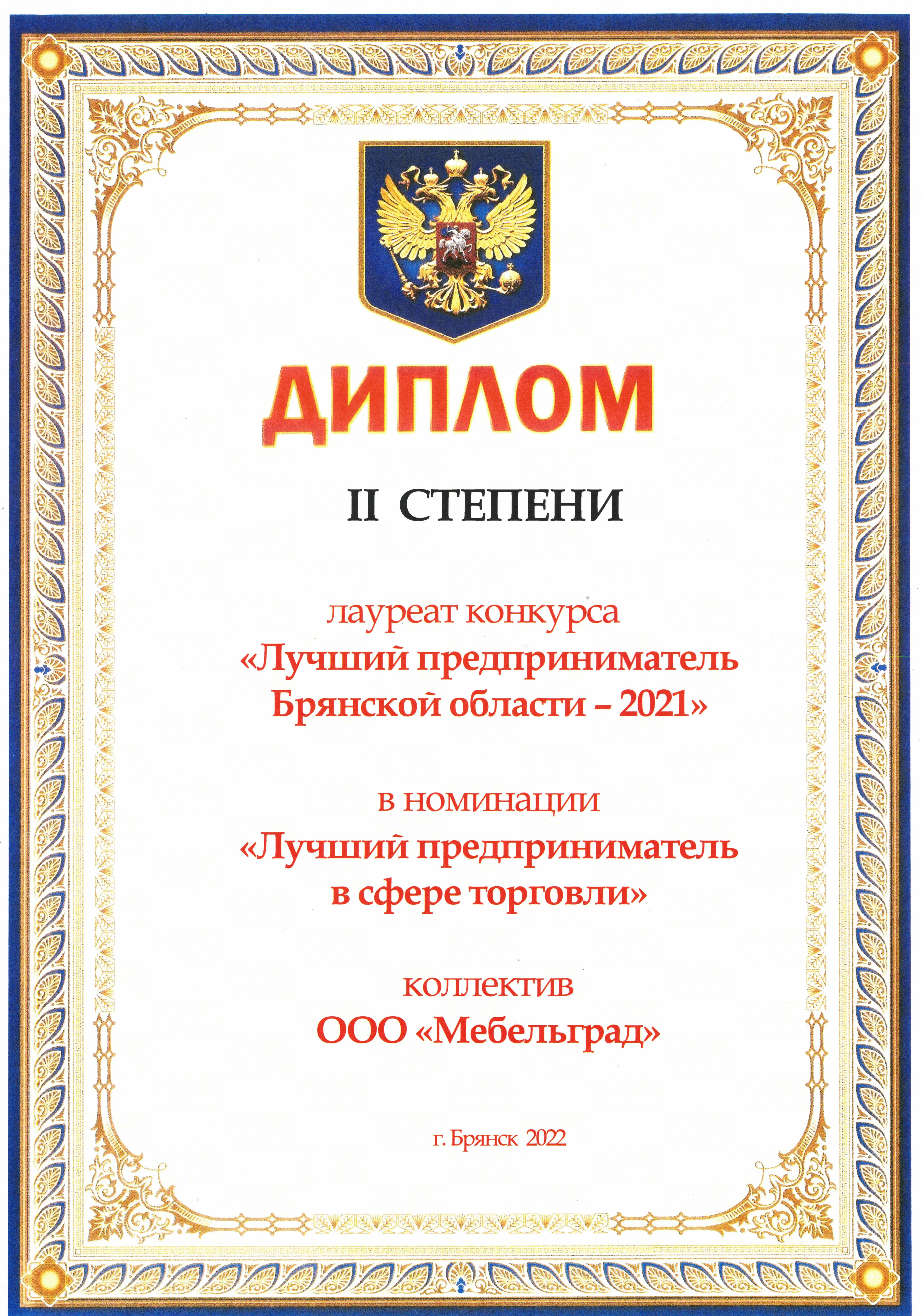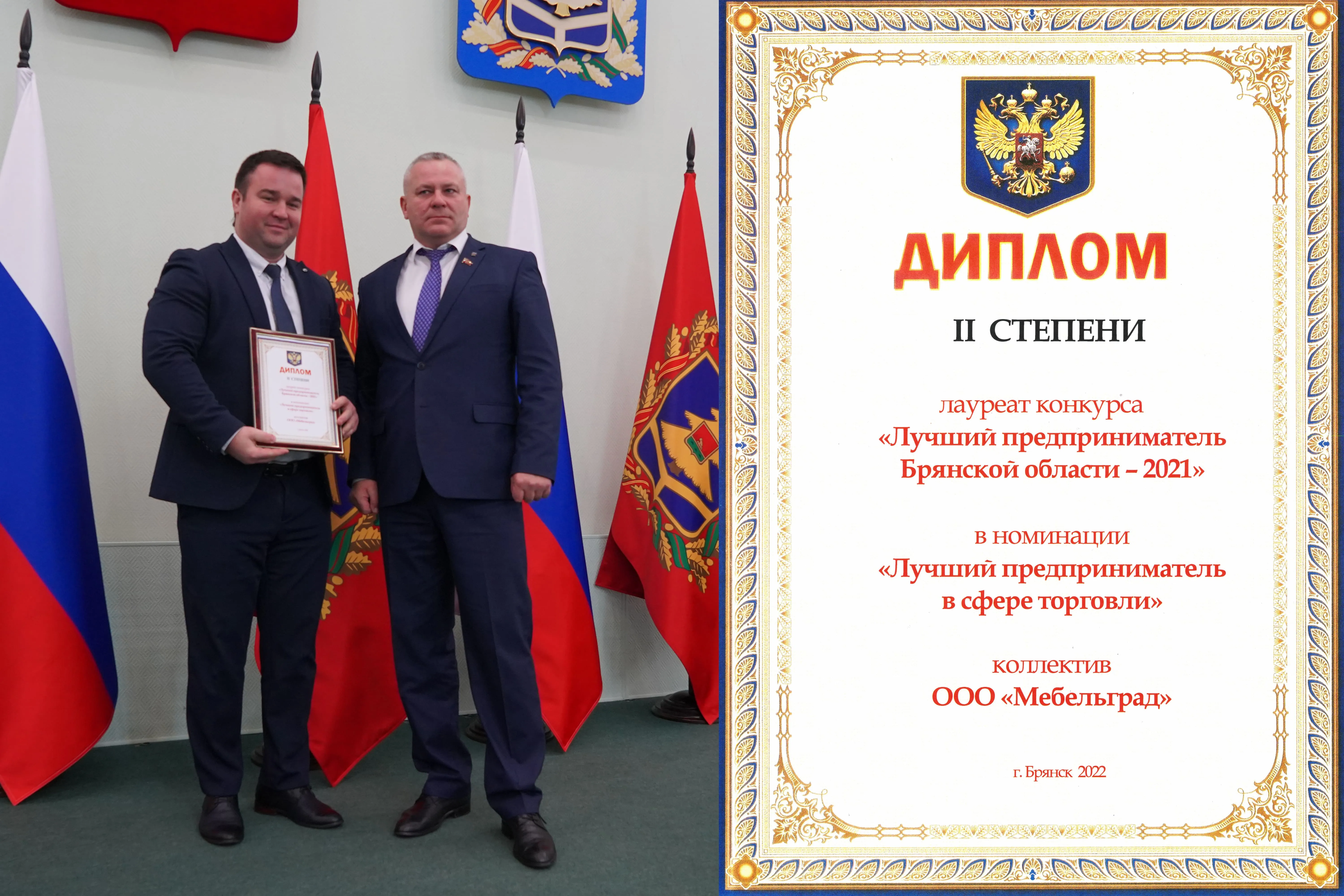 Диплом вручил лично губернатор Брянской области Александр Богомаз и председатель Брянской областной Думы Валентин Суббот.