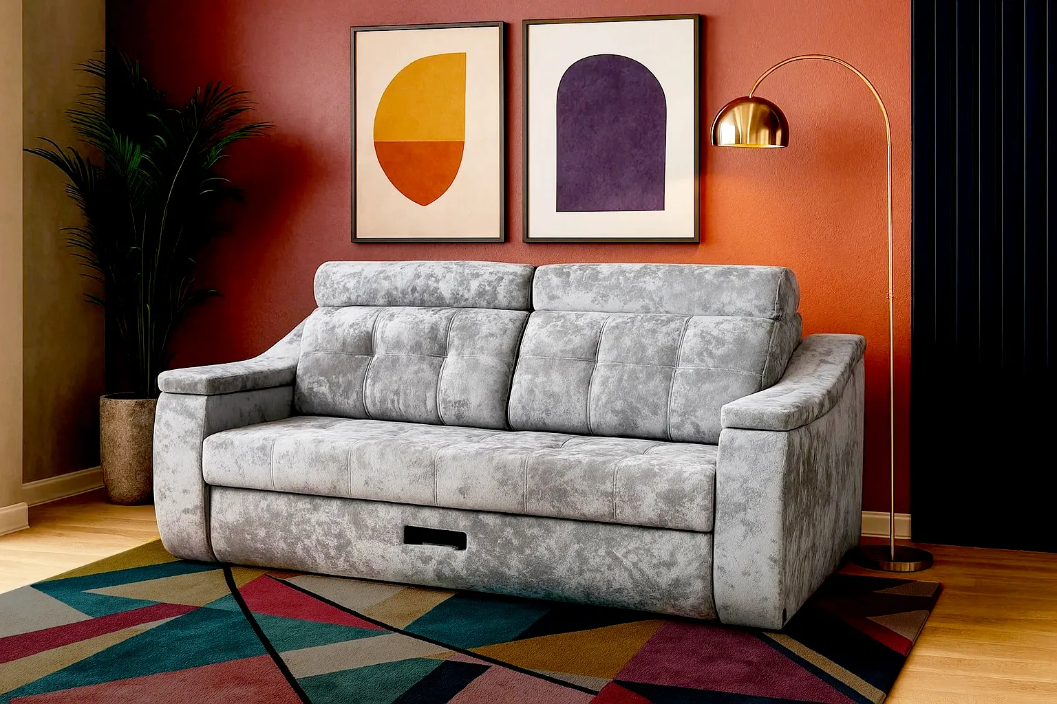 Тип трансформации: механизм тройной раскладки диванаНаполнитель: термовойлок, пеноплиуретан, независимый пружинный блок, синтепон, металлокаркас, холкон