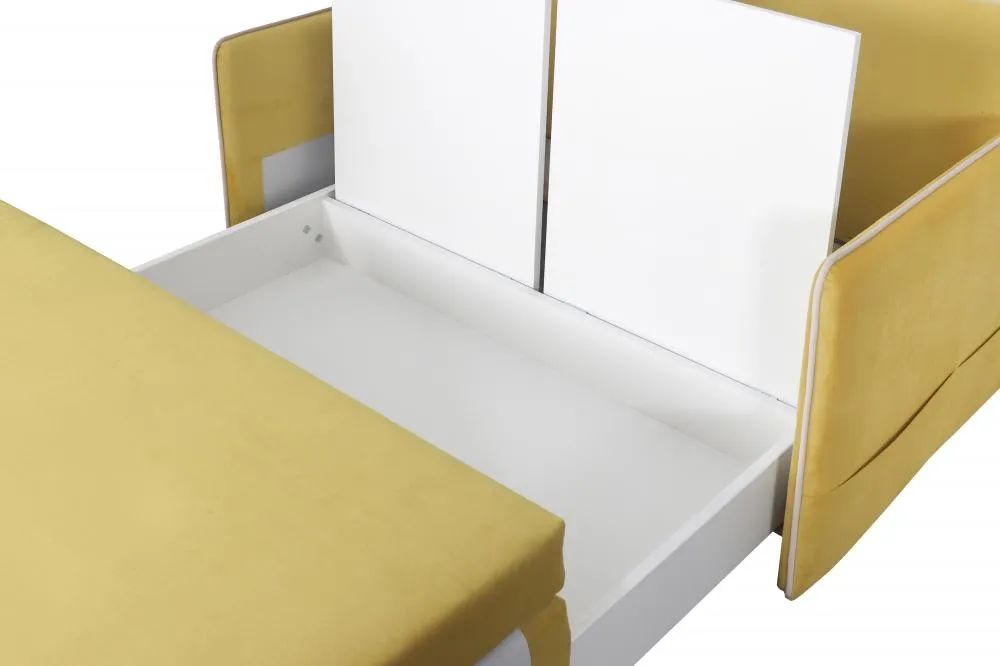 “Фламинго” оснащен простым и надежным механизмом трансформации, позволяющим быстро и легко превращать диван в удобную односпальную кровать. Вместительный ящик для белья обеспечивает дополнительное место для хранения детских вещей и игрушек.