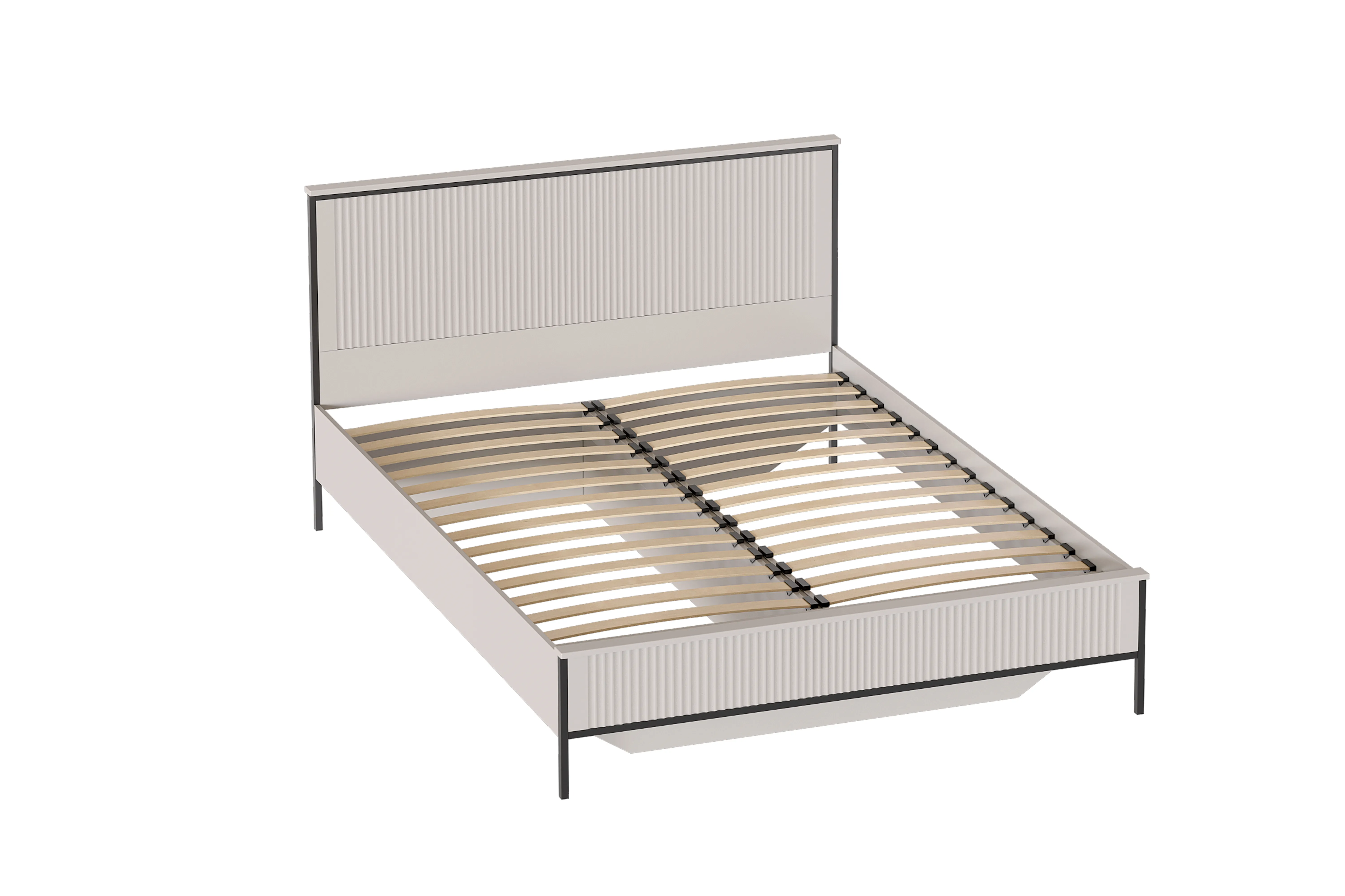В изголовье кровати в цвете Металл Бруклин / Графит присутствует мягкий элемент, изготовленный из высококачественного велюра Velutto и ППУ. Изголовье кровати в цвете Персидский жемчуг / Персидский жемчуг выполнено из МДФ и декорировано фрезеровкой. Матрасное основание из деревянных ламелей встроено в конструкцию кровати.