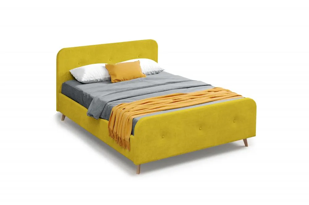 Изголовье имеет закругленный силуэт, обтянут велюровой тканью с пуговицами, что обеспечивает дополнительную мягкость и уют. Высокие стильные ножки из массива березы создадут ощущение легкости и воздушности.