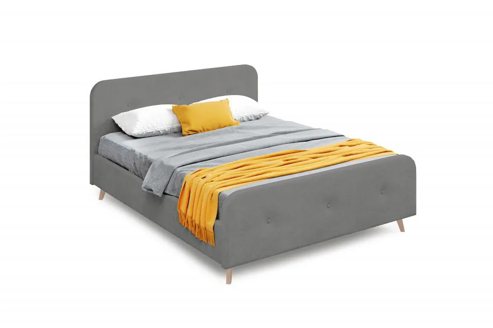 Изголовье имеет закругленный силуэт, обтянут велюровой тканью с пуговицами, что обеспечивает дополнительную мягкость и уют. Высокие стильные ножки из массива березы создадут ощущение легкости и воздушности.