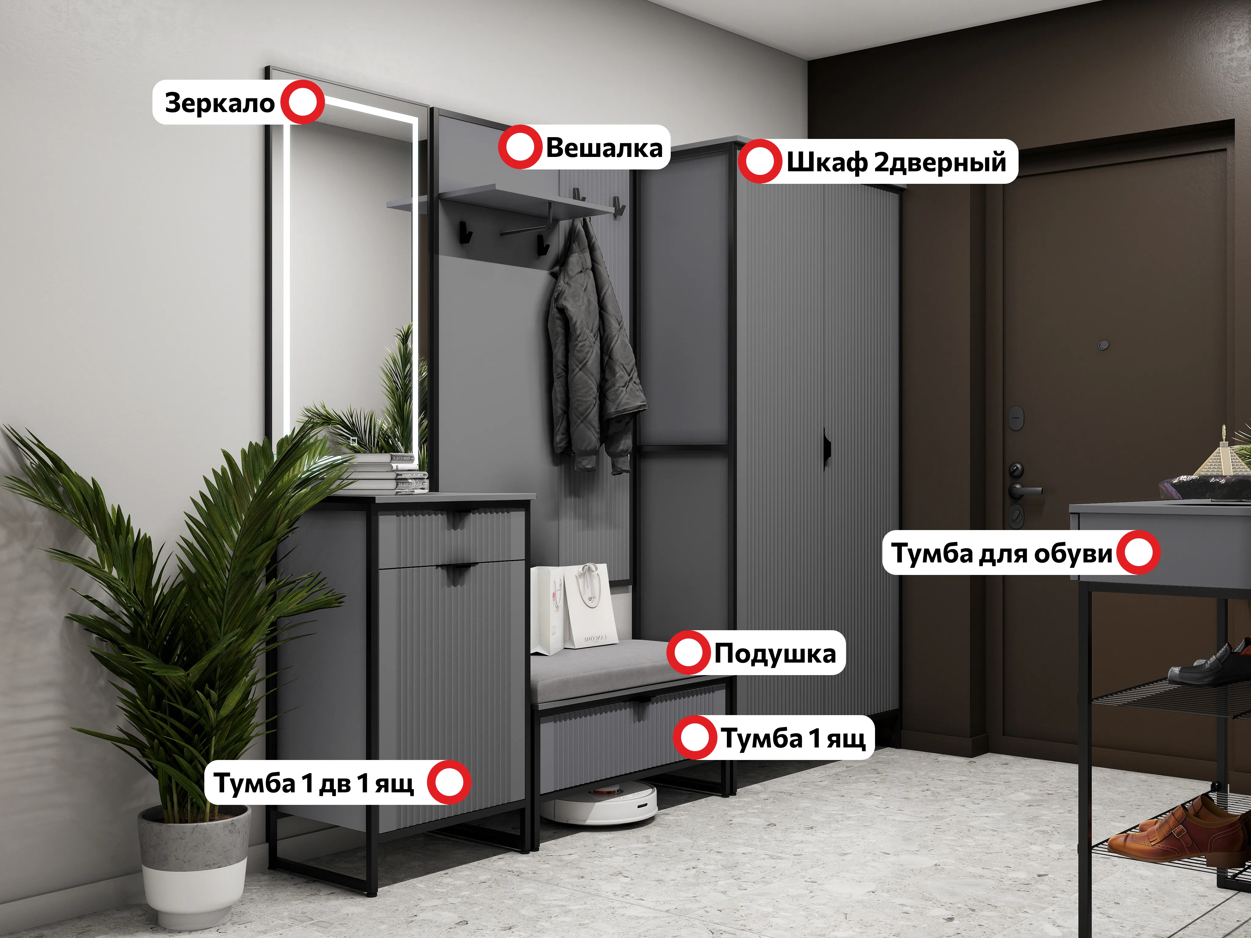 Прихожая "Нора" композиция #2 Графит