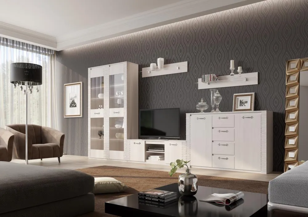 Отличительная черта серии "Элана" - вертикальные рифленые накладки на фасаде шкафа.