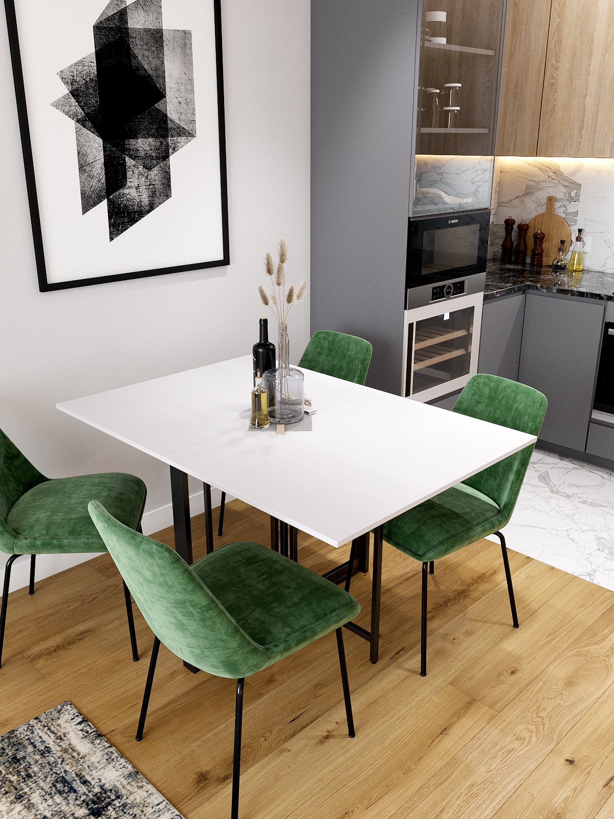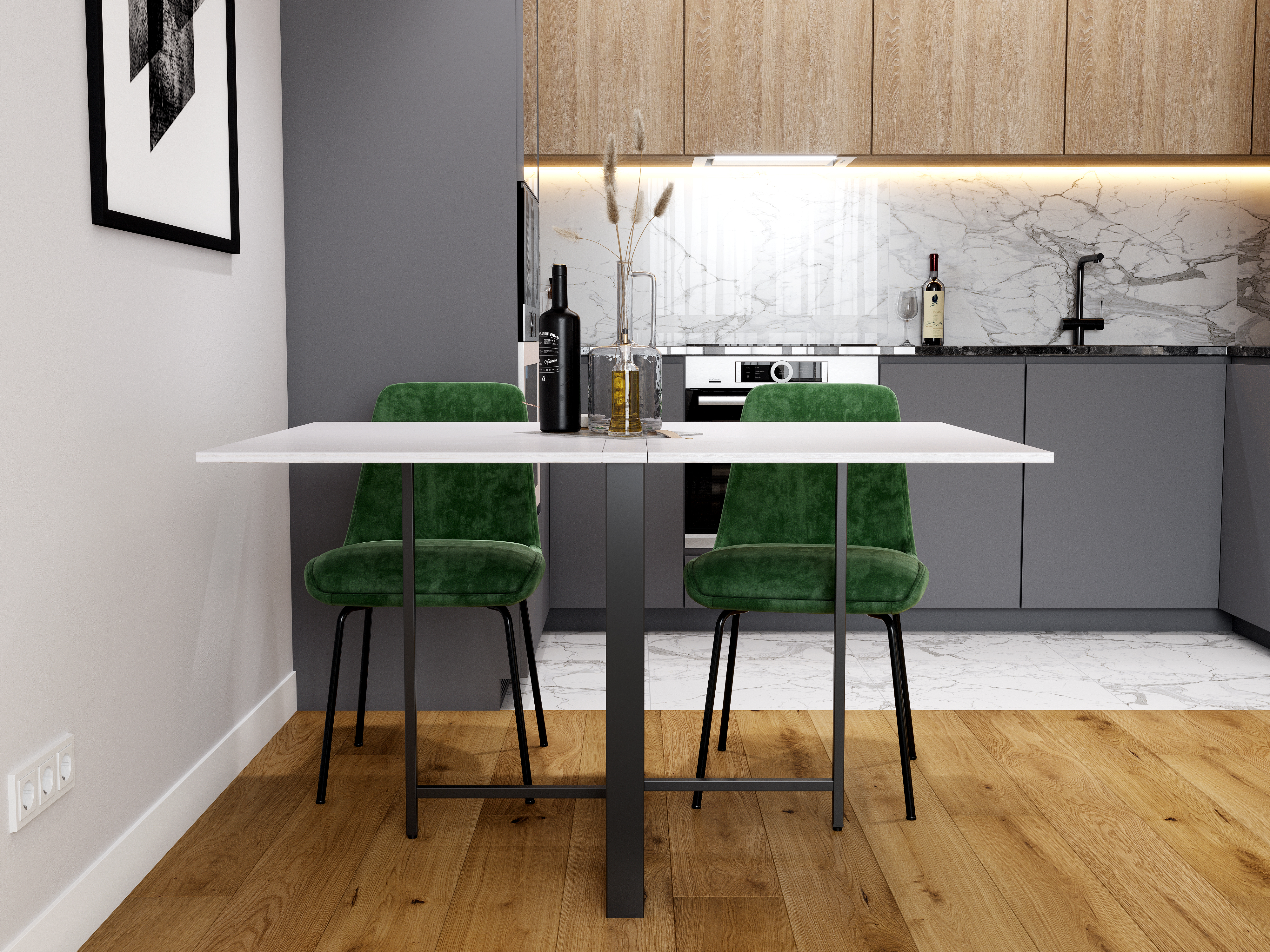 Раскладной стол "Брион 2" со столешницей из ЛДСП. Опорой для столешницы служит металлокаркас. В конструкции изделия предусмотрены регулируемые по высоте опоры.