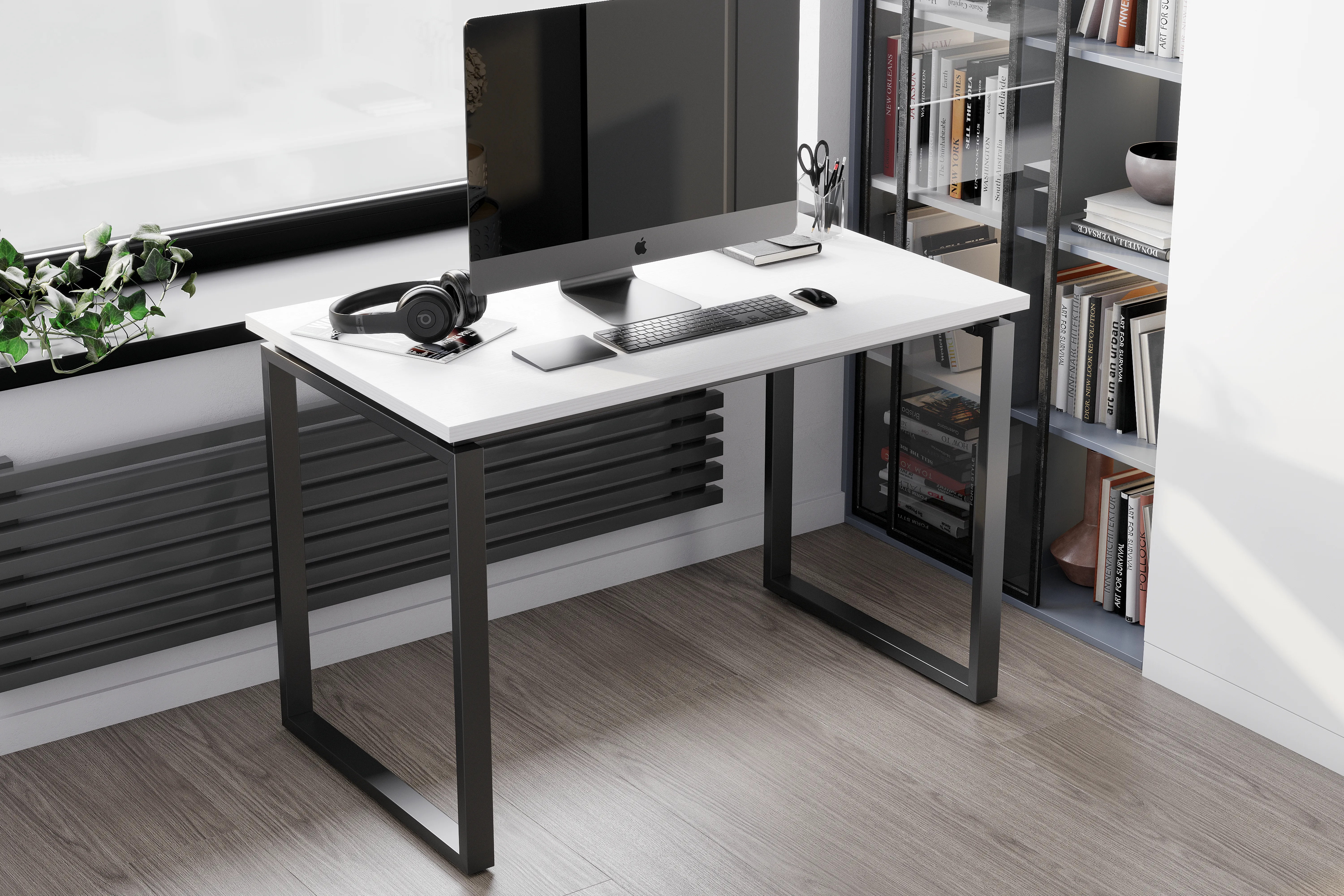 Металлический каркас для стола из прямоугольных замкнутых опор с парящей столешницей. Cкрытые под столешницей связи не позволяют столу шататься как на отдельных ножках |