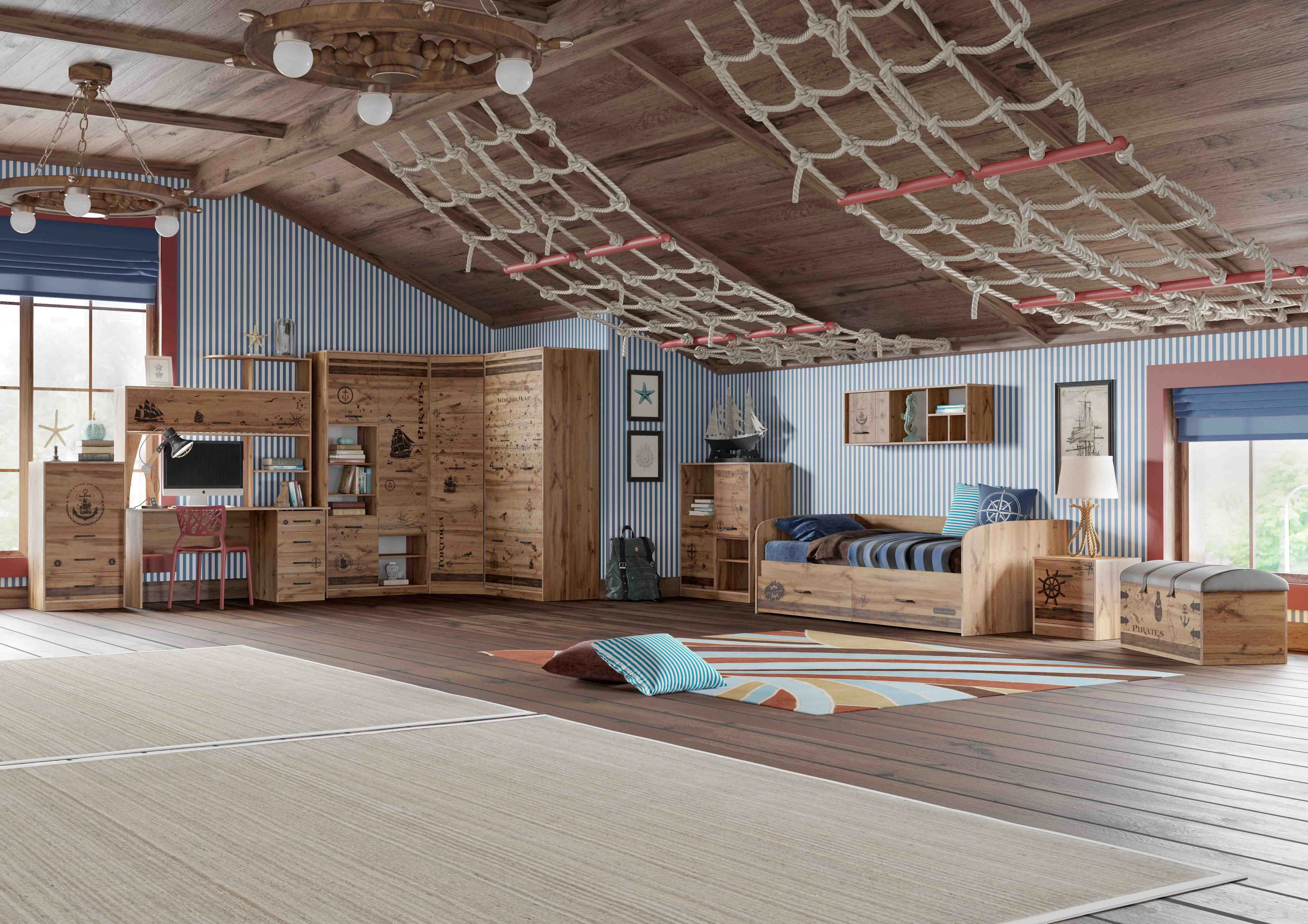 При оформлении детской на первый план выходит рациональное использование полезного пространства, ведь здесь ребенок не только отдыхает, но и играет, делает уроки, занимается творчеством и спортом. Наши дизайнеры при создании коллекций продумывают каждую деталь, опираясь на актуальные тенденции.