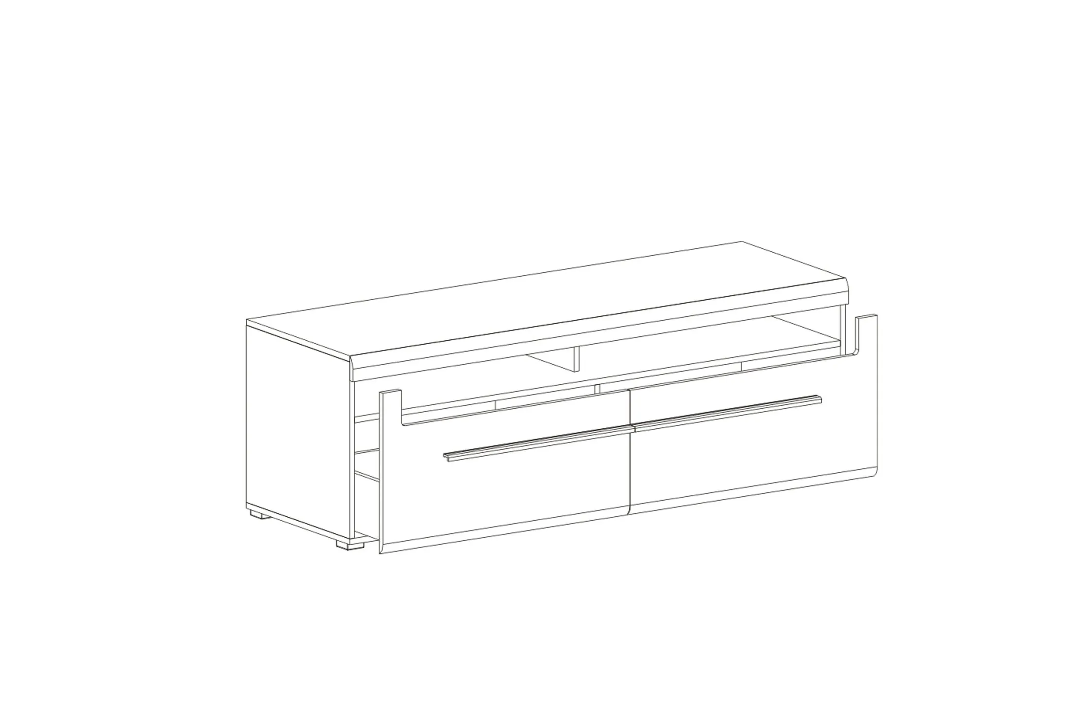 Корпус тумбы изготовлен из ЛДСП, фасады с закругленными линиями - из МДФ. Стиль изделия подчеркивают черные металлические ручки. Тумба имеет открытое отделение для хранения и два объемных выдвижных ящика на шариковых направляющих.